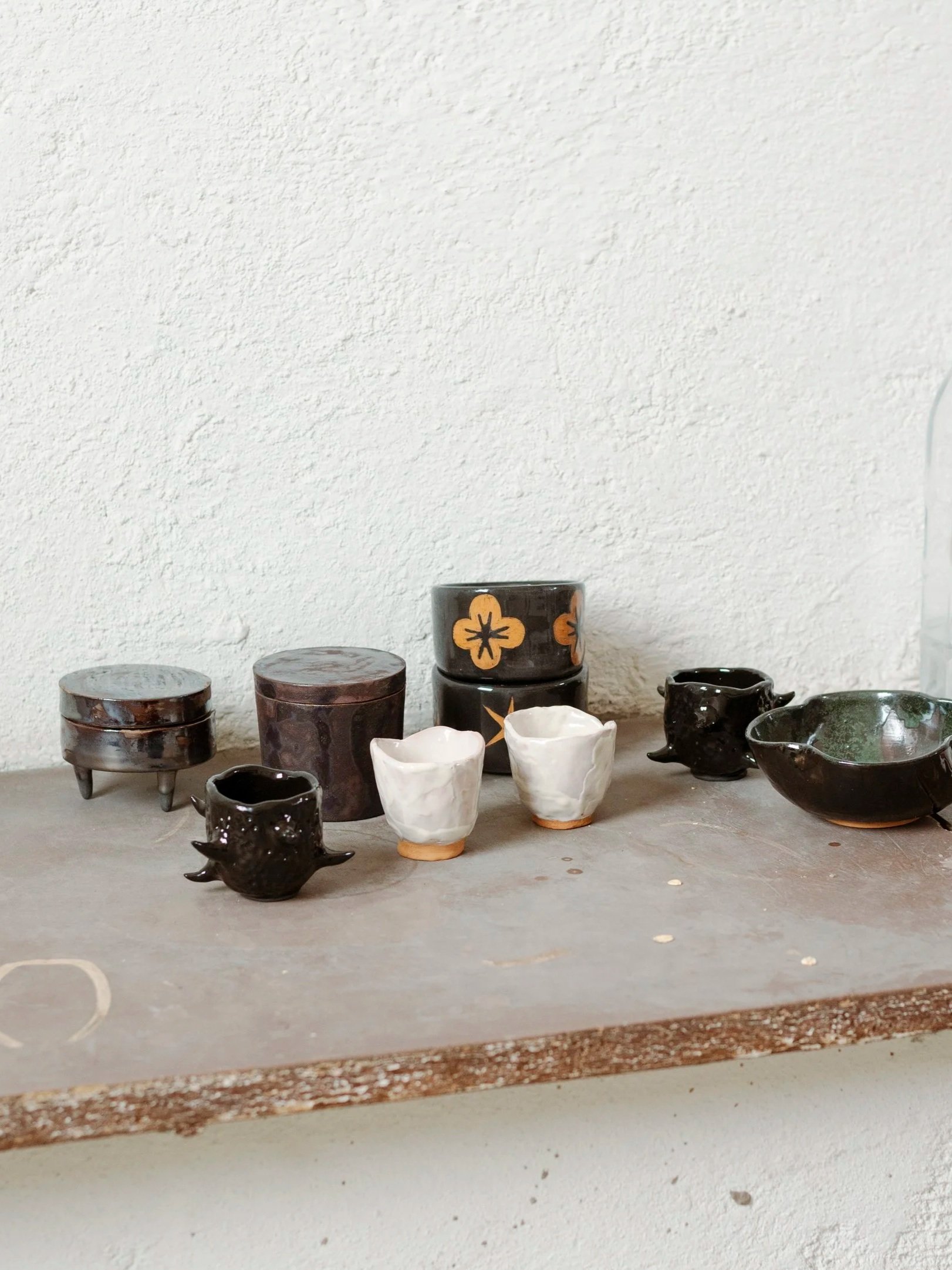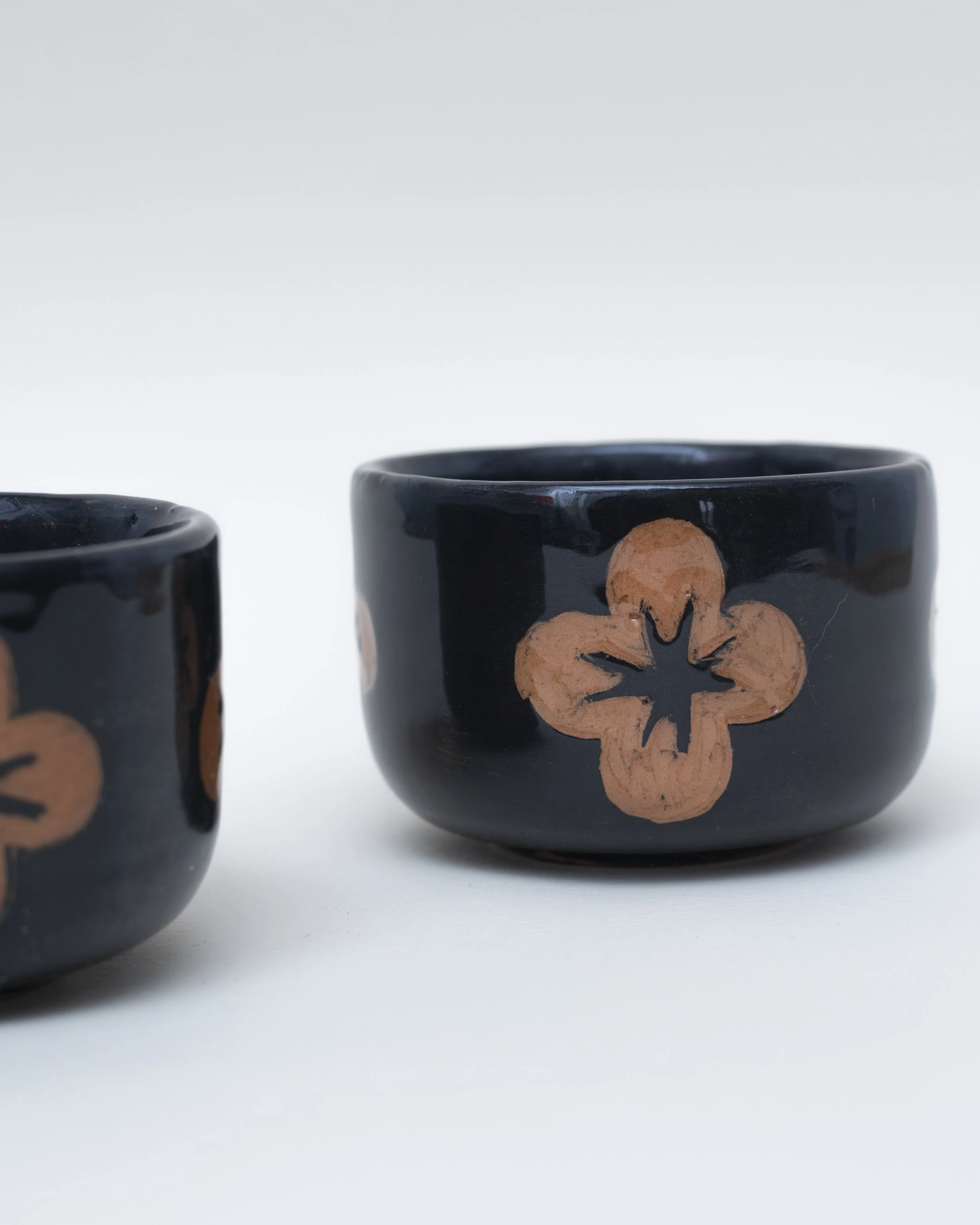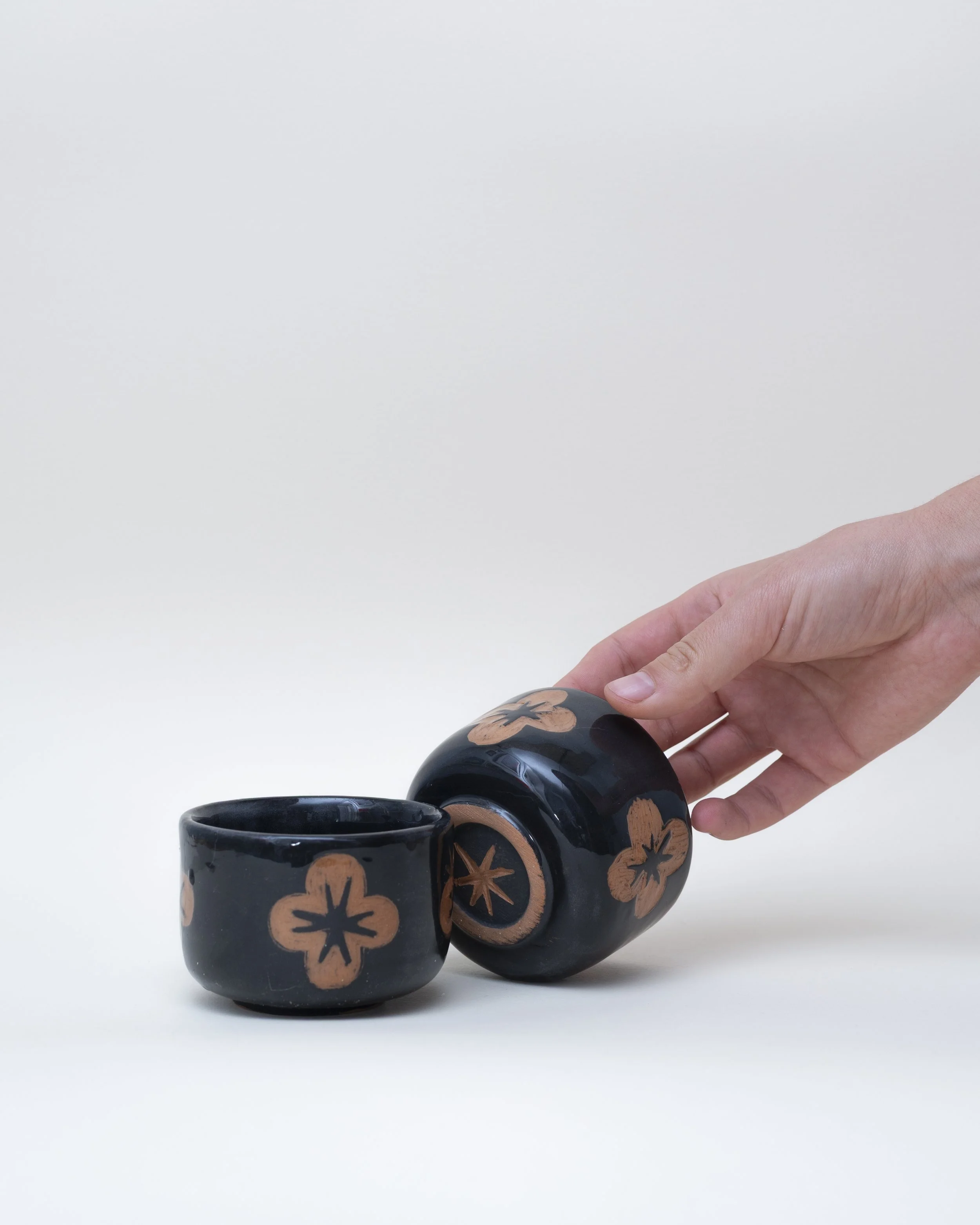 La Bloom Cup celebra una bellezza discreta. Forme simili a petali sono incise a mano sulla sua superficie nera profonda, evocando la silenziosa resilienza dei fiori nell’ombra. Il contrasto tra lo smalto scuro e setoso e i motivi incisi invita sia lo sguardo sia il tatto.