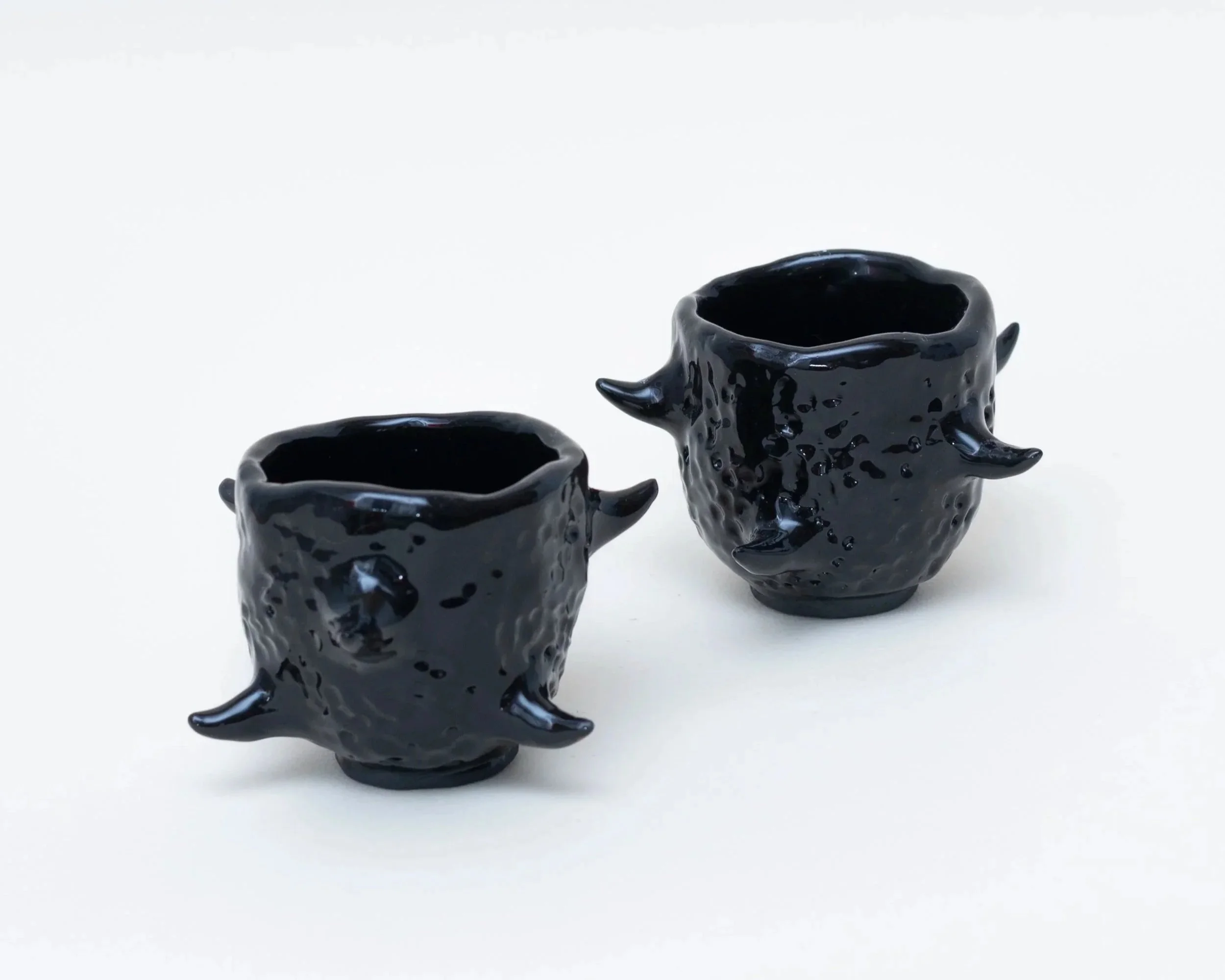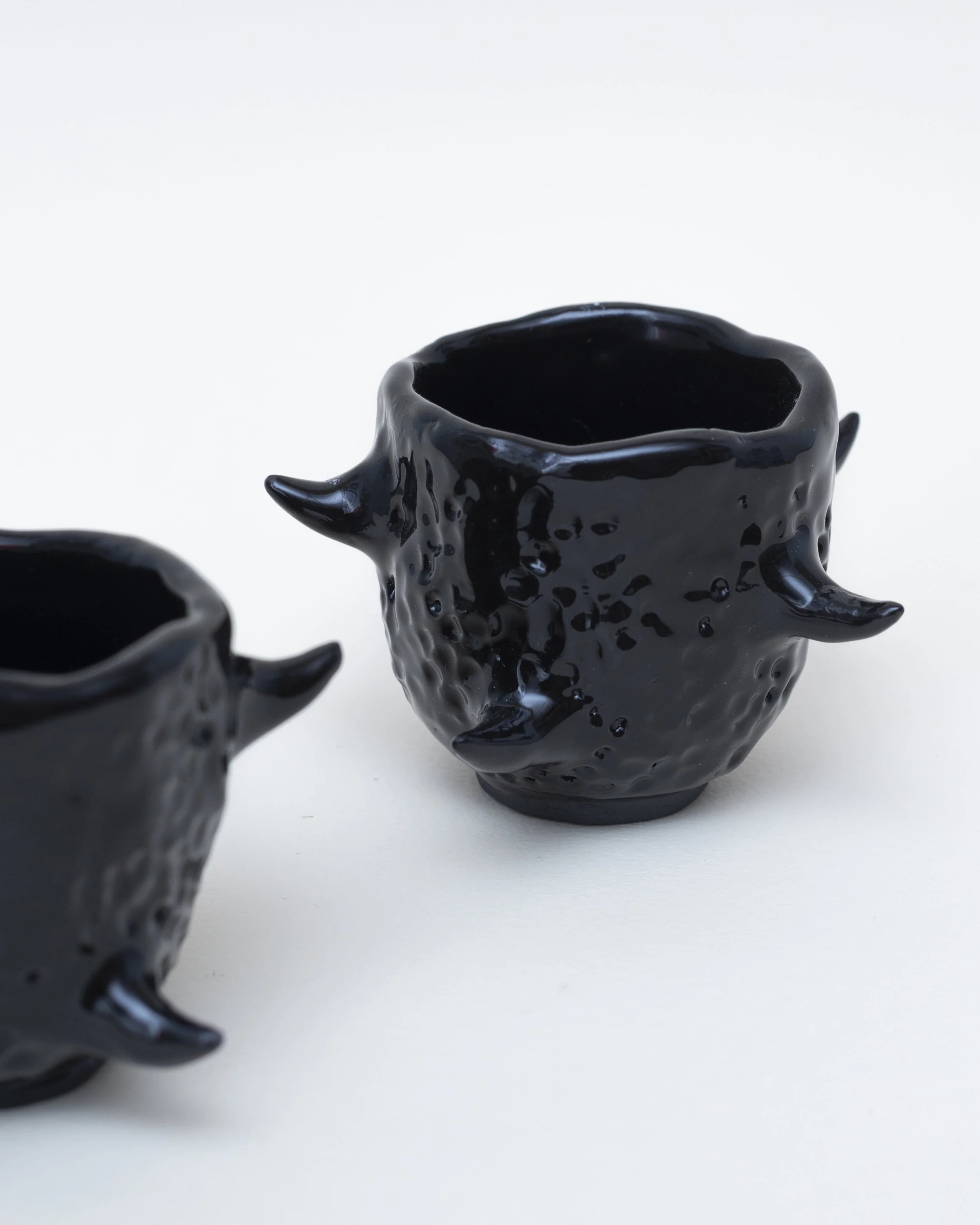 Scure, lucide e affilate per scelta, le I’m Thorn Espresso Cups sono una ribellione silenziosa contro l’ordinario. Scolpite con dettagli che richiamano spine e rivestite da uno smalto nero profondo effetto specchio, invitano al contatto, ma alle loro condizioni.